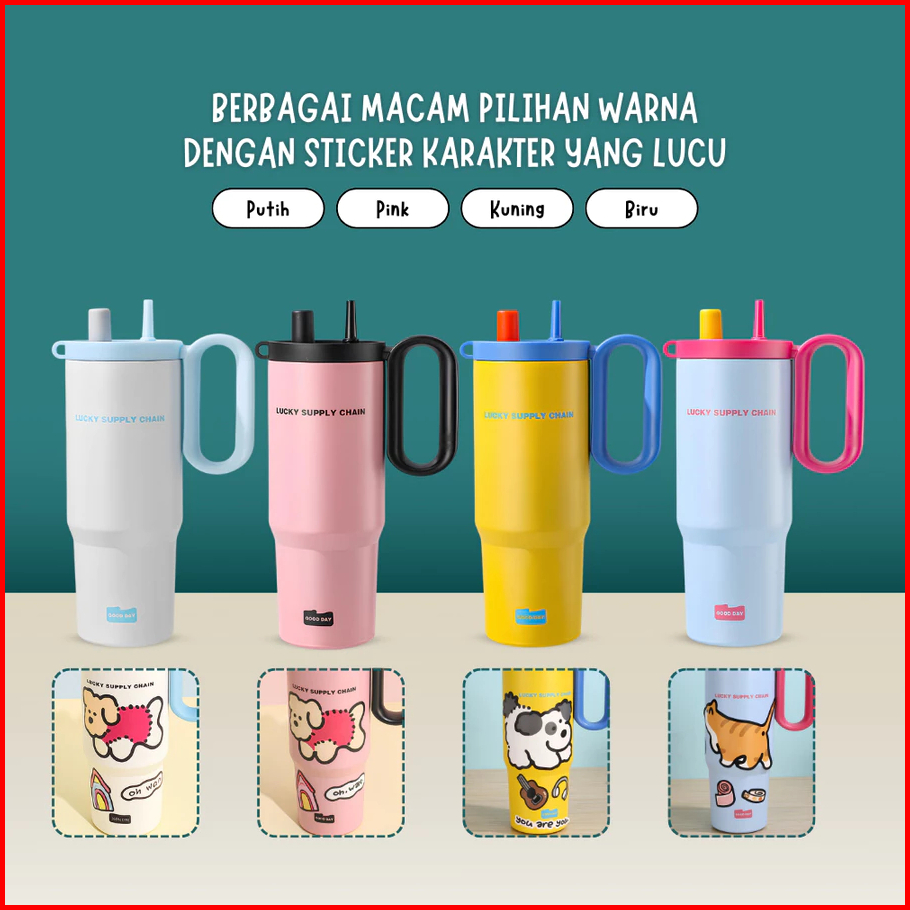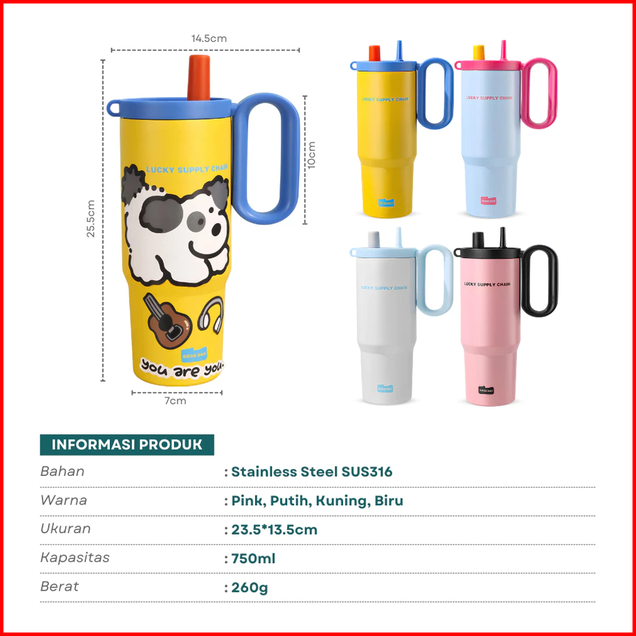 Tumbler Cantik Gagang Stainless Steel Sus 316 Botol Minum 750ml Vacuum Cup Tahan Panas Dingin Hz048