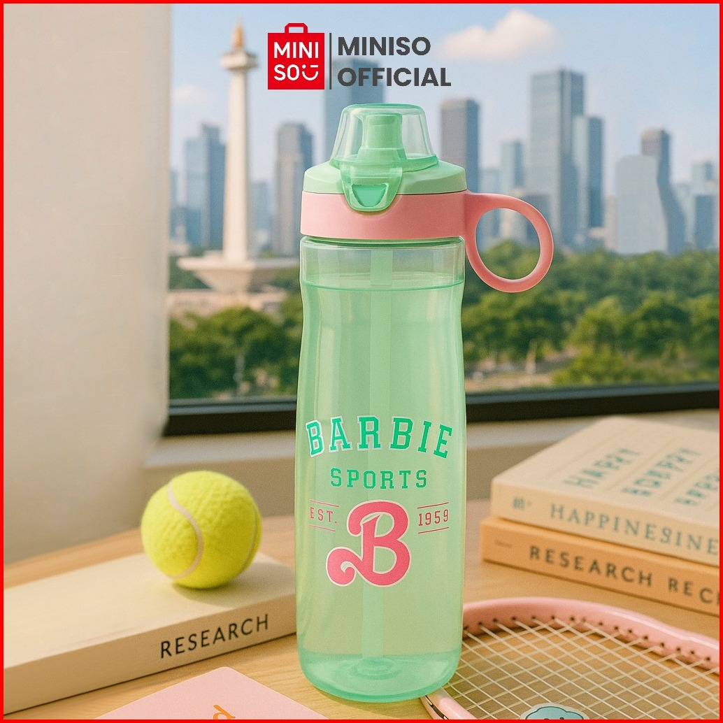 Miniso X Barbie Collection Plastic Bottle With Handle Straw 1000ml Botol Minum Tumbler Plastik Kapasitas Besar Karakter