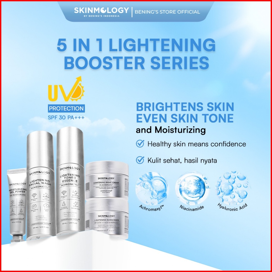 Skinmology By Bening S Clinic Indonesia - Paket 5 In 1 Lightening Booster Series - Cream Malam - Sabun Muka Face Wash -
