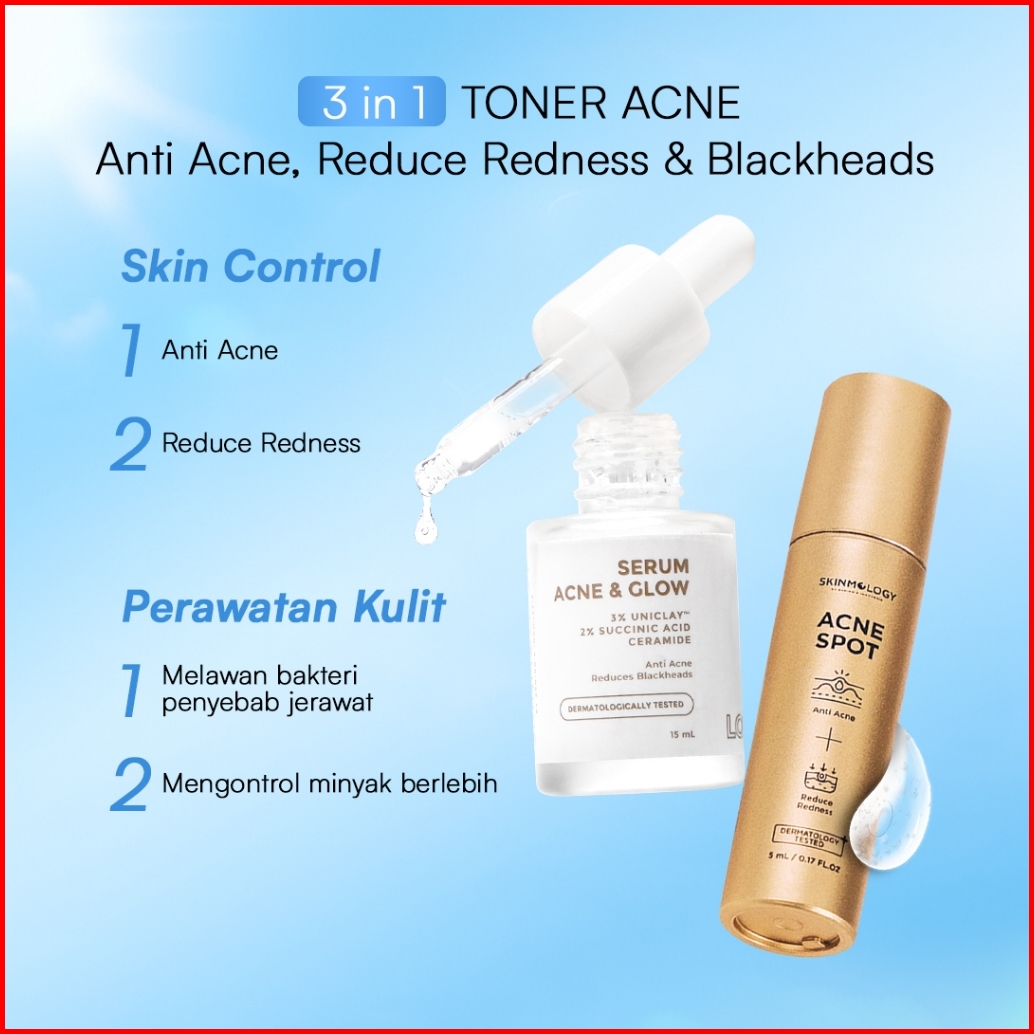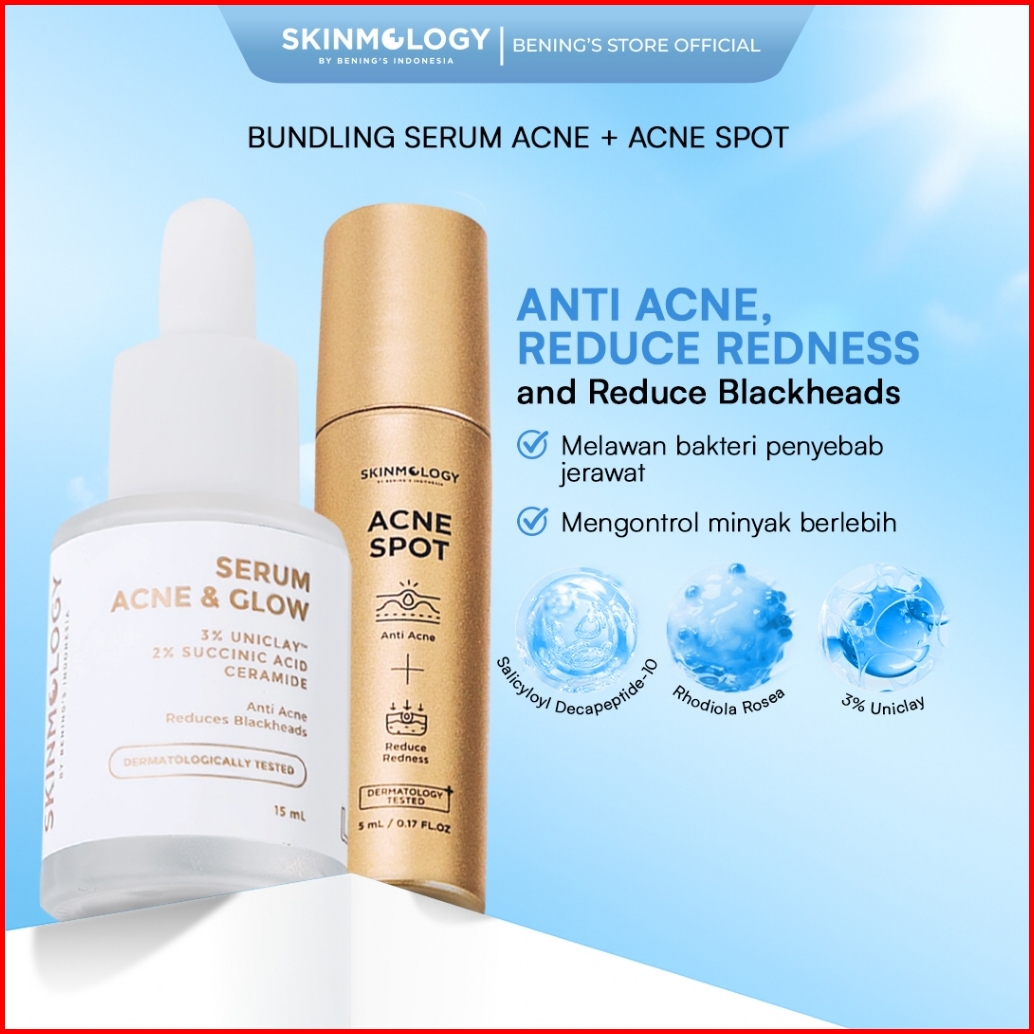 New Skinmology By Bening S Clinic Indonesia - Bundling Serum Acne Glow Acne Spot - Uniclay Salicylyol Decapeptide - Menc