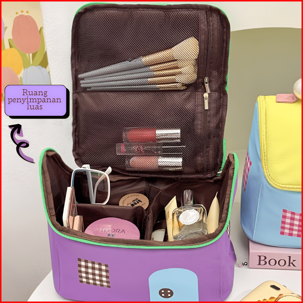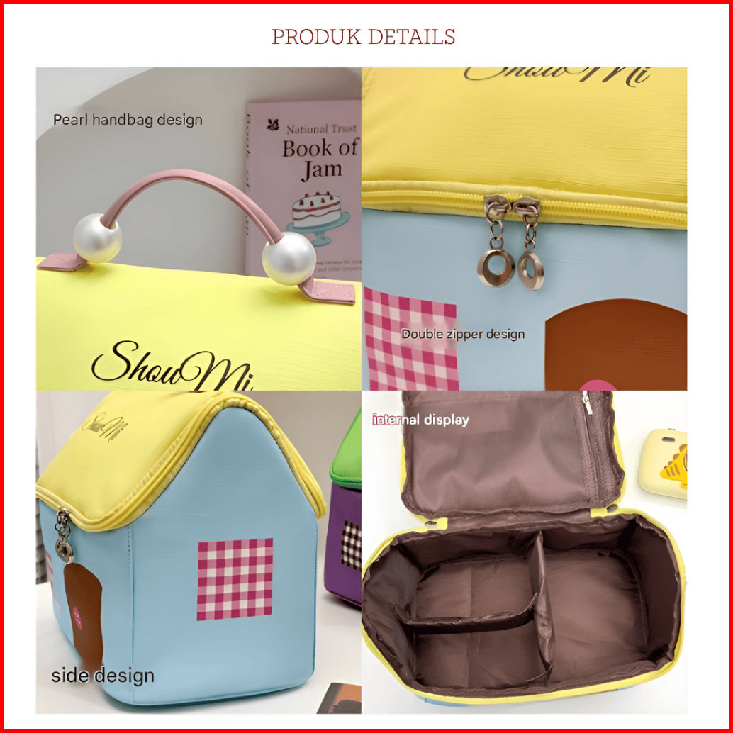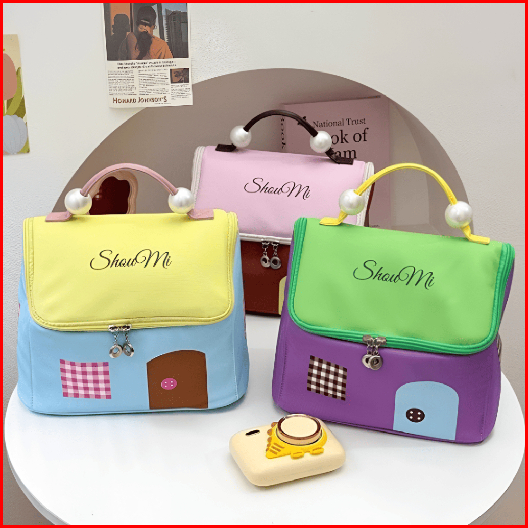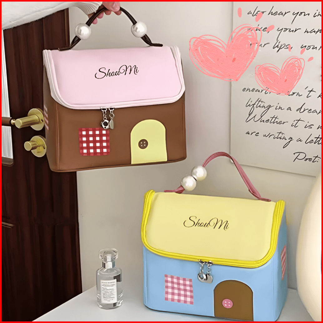 Tas Kosmetik Karakter Washbag Organizer Make Up Dengan Pegangan Mutiara Elegan
