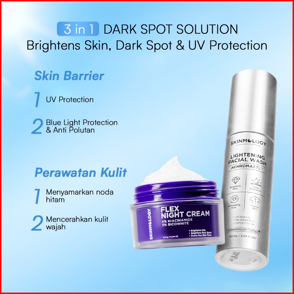 Skinmology By Bening S Clinic Indonesia - 3in1 Dark Spot Solution - 3pcs Sunscreen Night Cream Cleanser - Niacinamide Bi