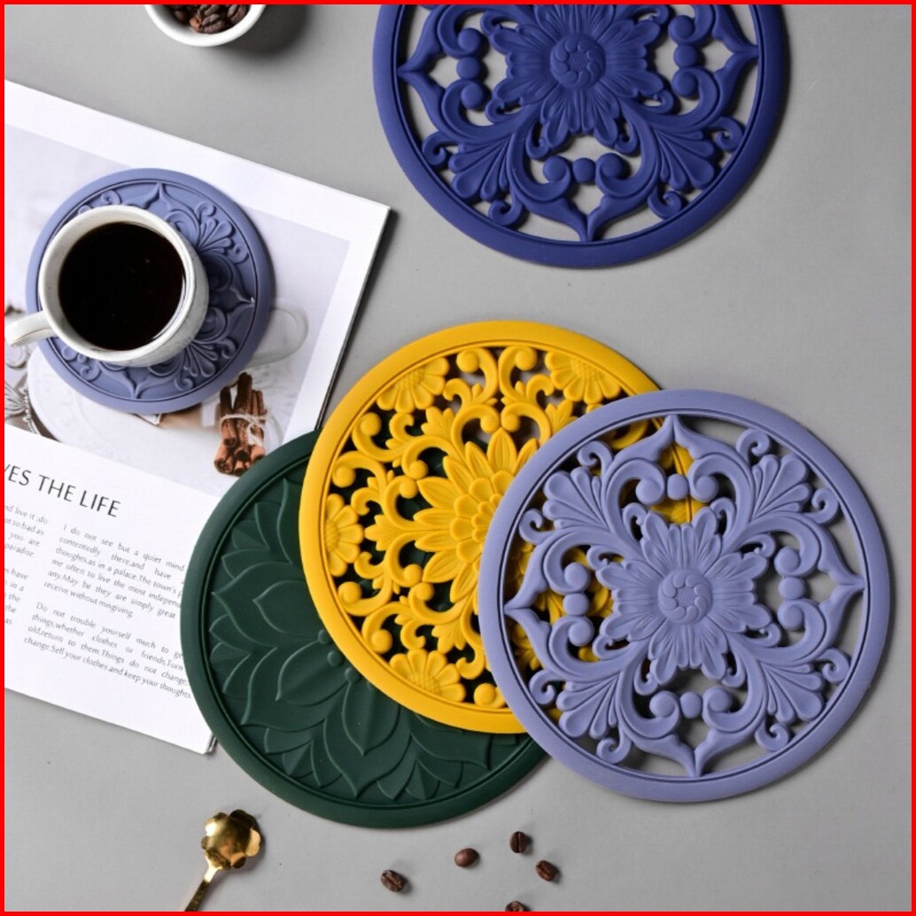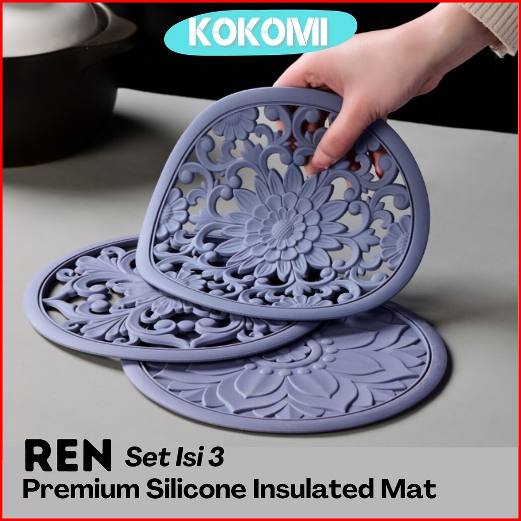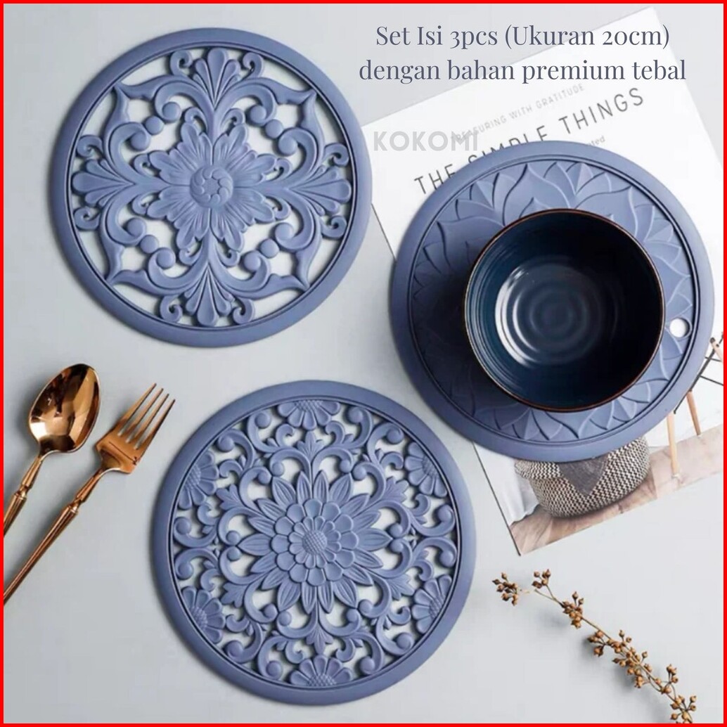 Kokomi Set Isi 3pcs Ren Alas Tatakan Panci Silicon Anti Panas Silicon Insulation Mat 20cm Tatakan Piring