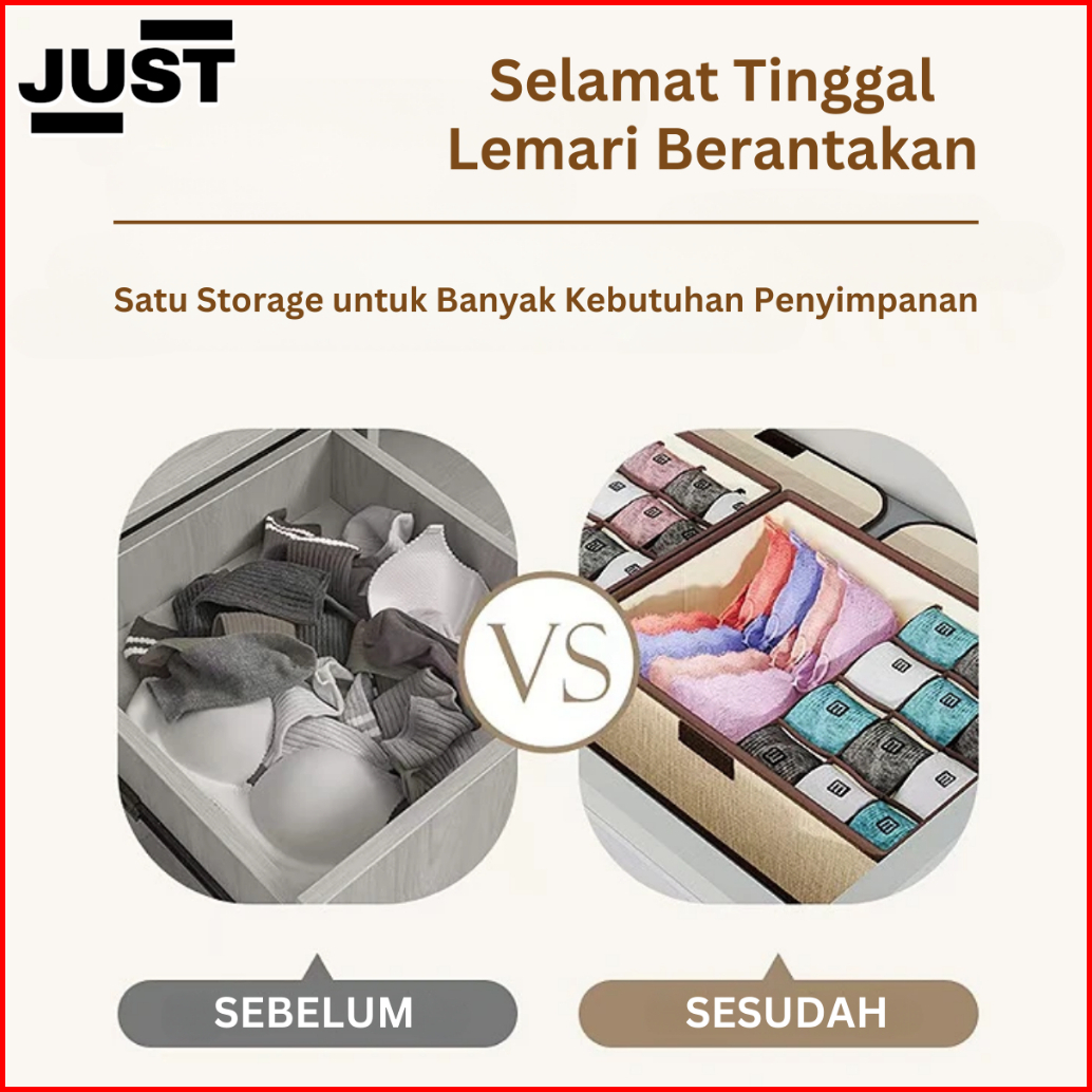 Just Storage Box Organizer Kotak Sekat Tempat Penyimpanan Celana Dalam Bra Dan Kaos Kaki Laci Lemari Pakaian Serbaguna T