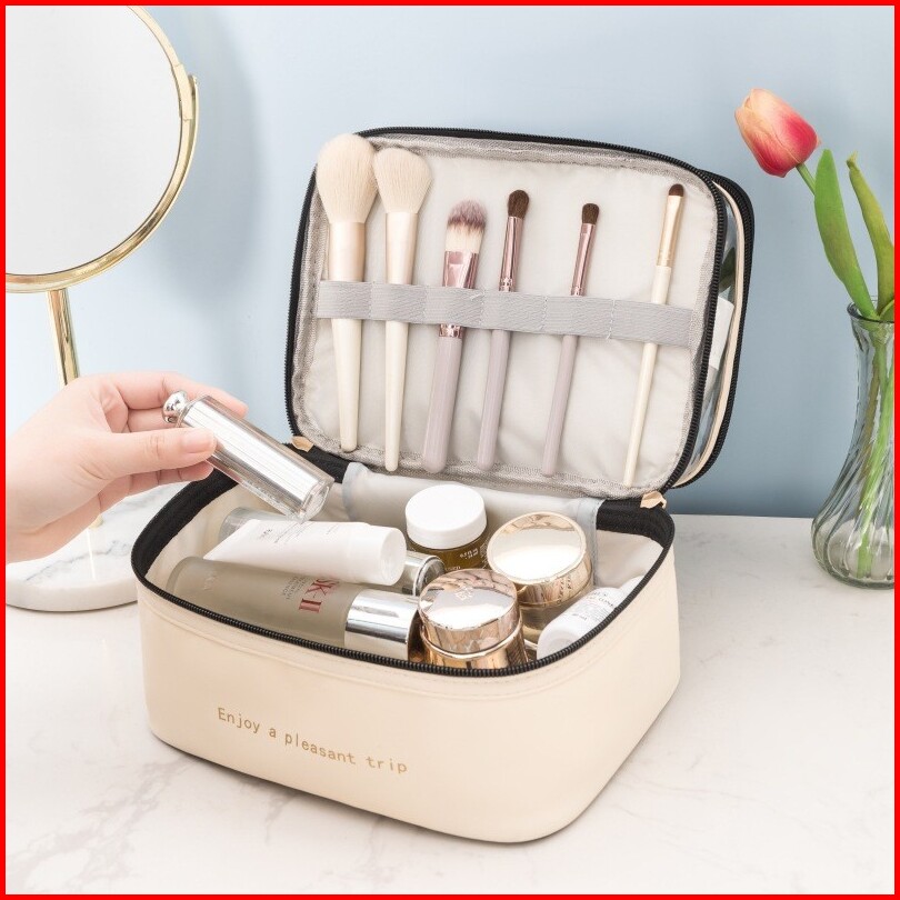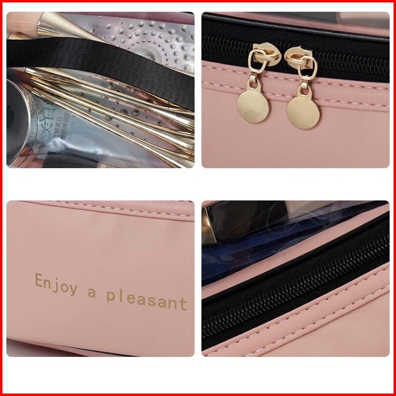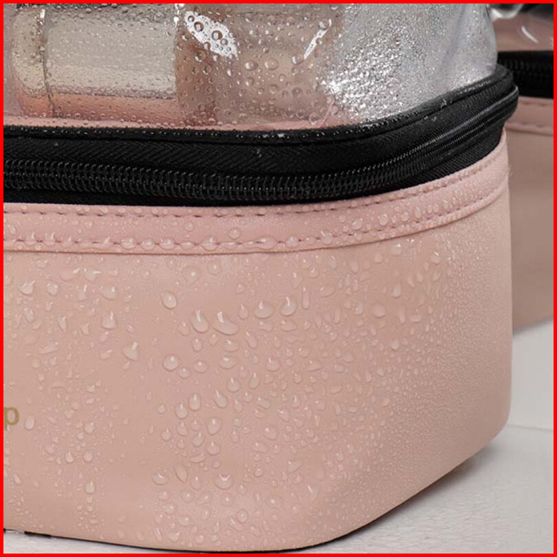 Tas Transparan 2 Lapis - Penyimpanan Tas Kosmetik Transparan Pu Tahan Air Tempat Penyimpanan Portable Pouch Travel Korea