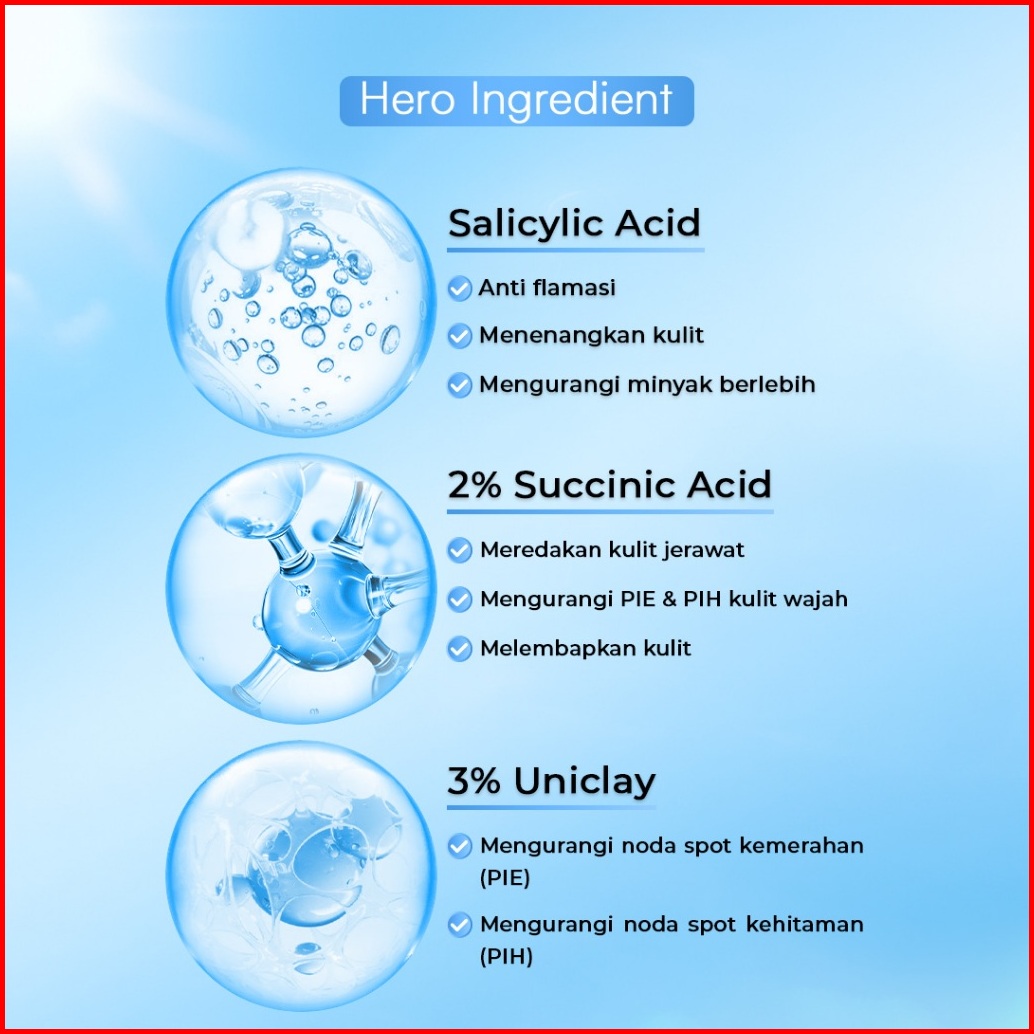 Skinmology By Bening S Clinic Indonesia - 4in1 Acne Treatment Series - Salicylid Acid Uniclay Sunscreen Spf 30pa - Krim