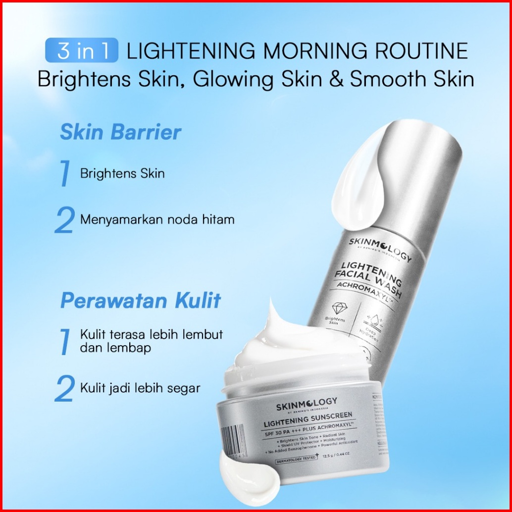 Skinmology By Bening S Clinic Indonesia - Paket Morning Lightening Booster Series - Cream Malam - Sabun Muka Face Wash -