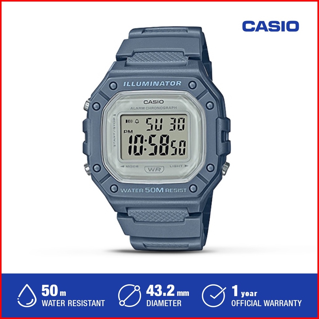 Jam Tangan Casio Digital Original W-218hc-2avdf Pria Wanita