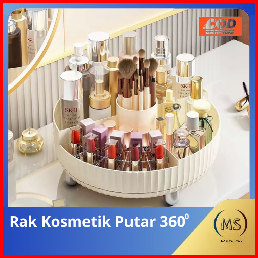 Tempat Penyimpanan Rak Kosmetik Putih Putar 360 Rak Kosmetik Sekat Minilais