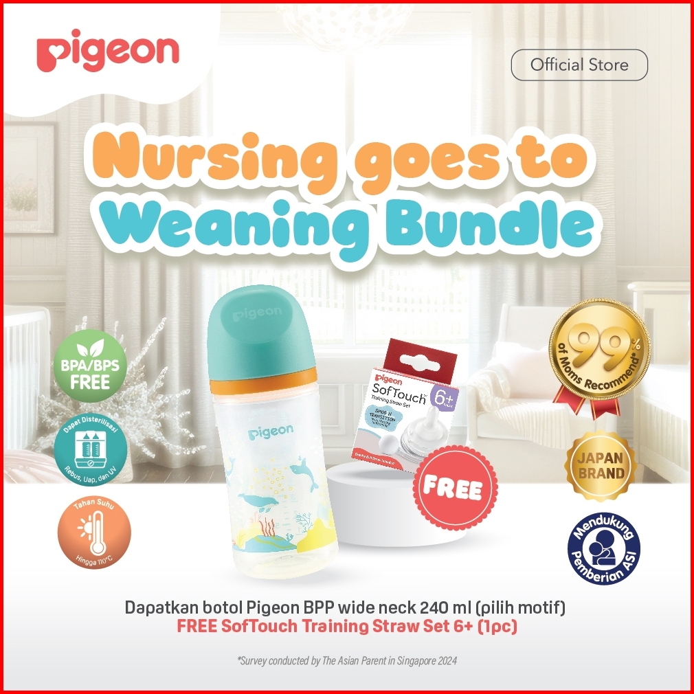 Pigeon Nursing Goes To Weaning Bundle Botol Bpp 240ml Softouch Training Straw Set Dot Bayi Botol Bayi Lembut Anti Kolik