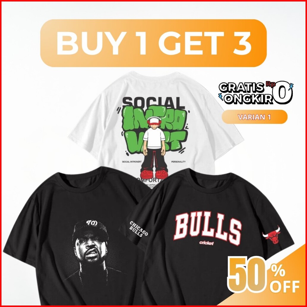 Terlaris Kaos Distro Motif Bundling Paket Baju 3pcs T-shirt Full Katun 30s Baju Distro