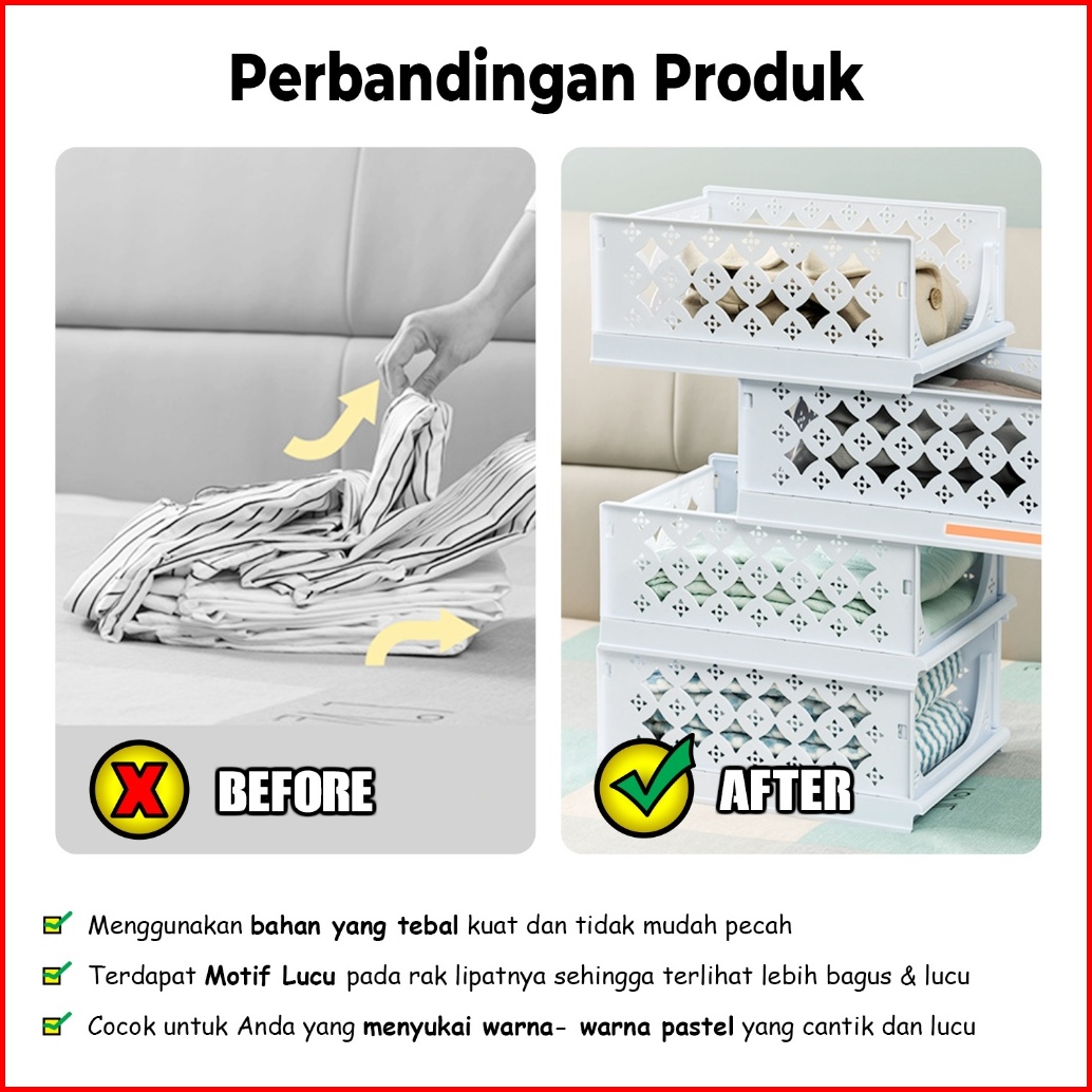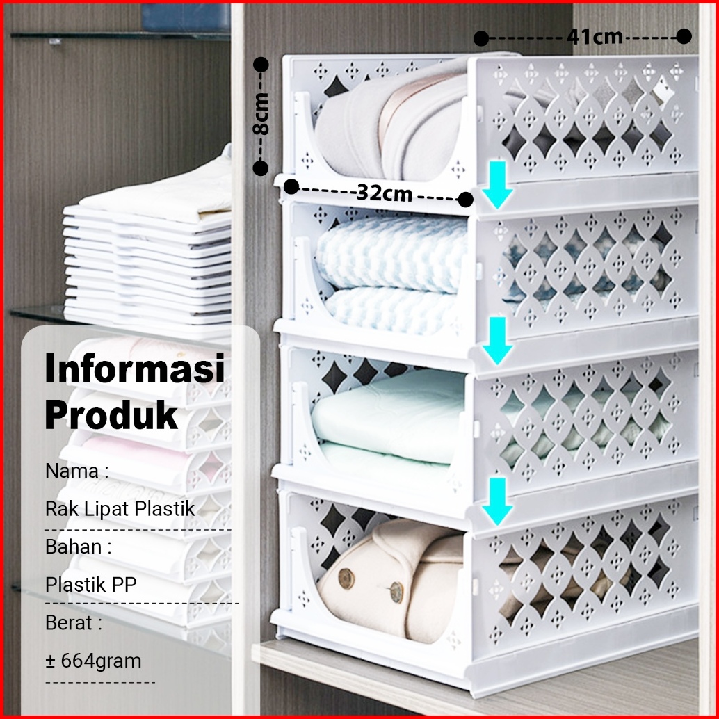 Laci Lipat Rak Baju Storage Susun Bisa Digeser Serbaguna Tempat Baju Selimut Kaos Kaki Pbr-j