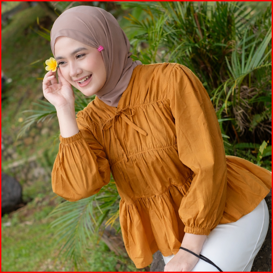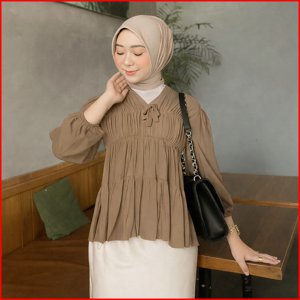 Mireya Blouse Kerut Dada Lengan Panjang Bahan Rayon Atasan Wanita Terbaru