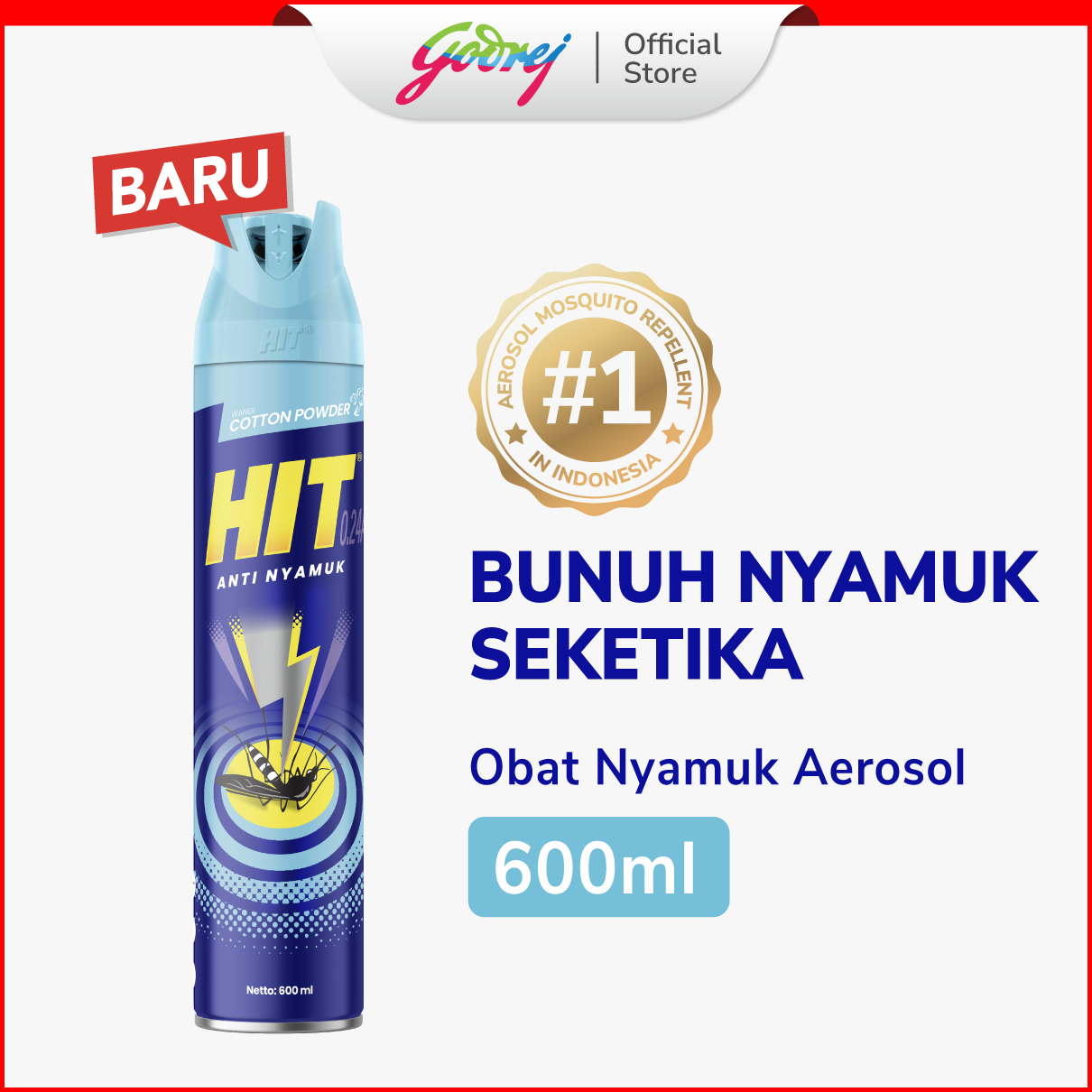 Hit Aerosol Cotton Powder 600ml - Obat Nyamuk - Bunuh Nyamuk Penyebab Demam Berdarah Dbd