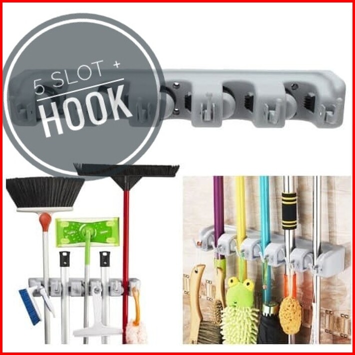 Gs Magic 5 Slot Hook Gantungan Sapu Hanging Mop Holder Alat Pel Hanger Broom Holder