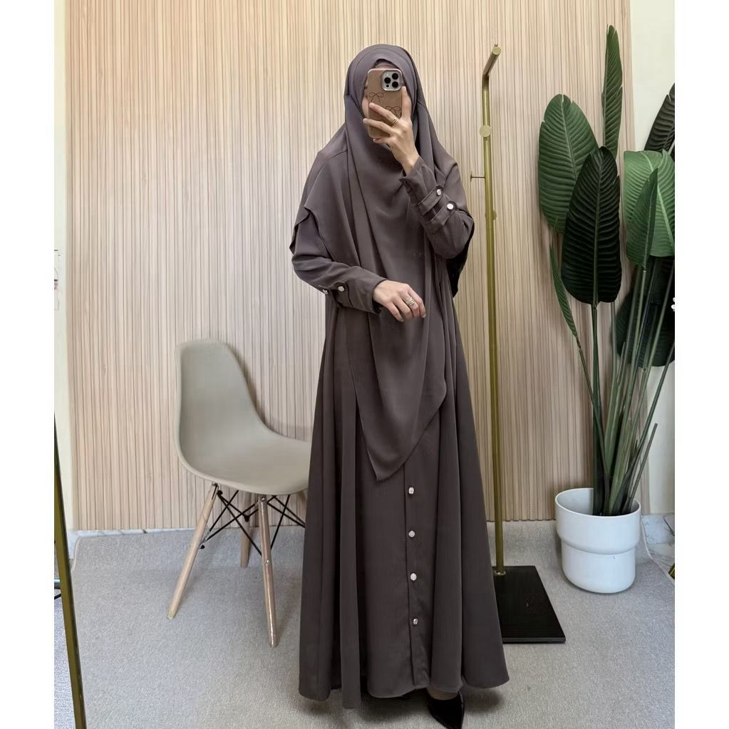 Gamis Syar'i terbaru umroh haji hitam abaya Arumi Set Khimar French Bahan Crinkel Ukuran M L XL XXL