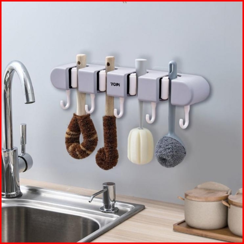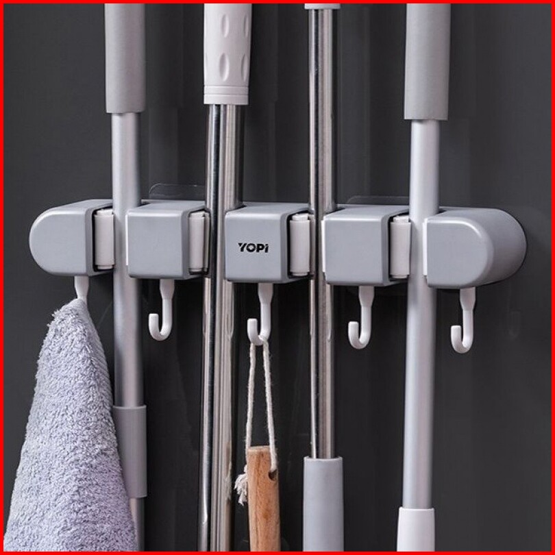 Kait Penyimpanan Tanpa Pukulan Dengan Tempat Penjepit Sapu Dan Pel Broom Holder 4 Slot Untuk Dapur Dan Kamar Mandi