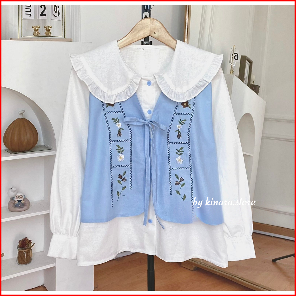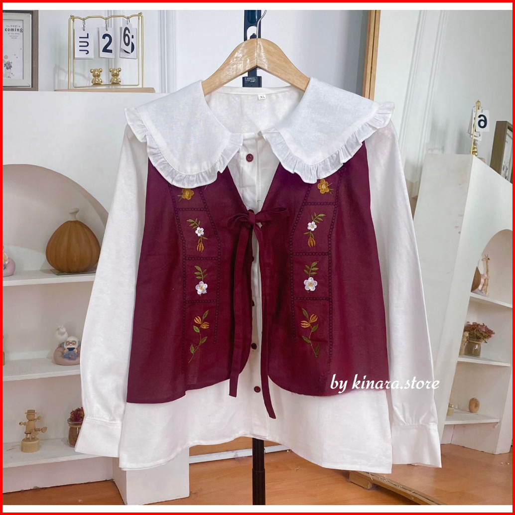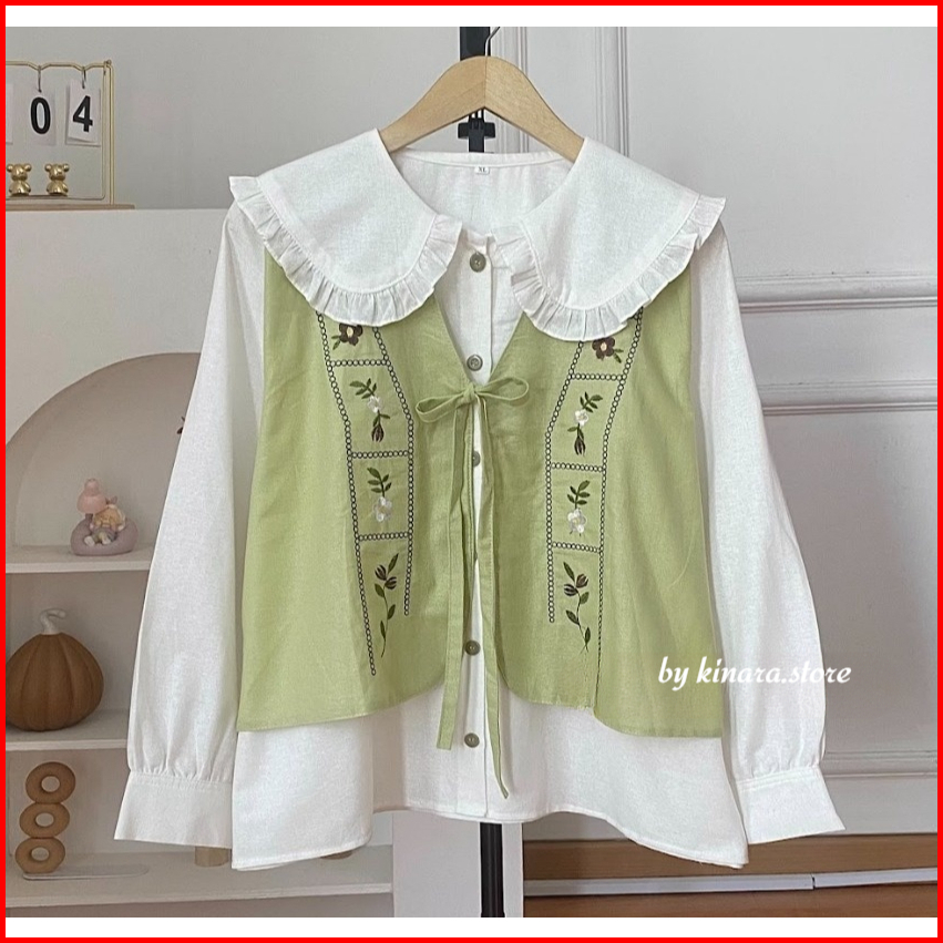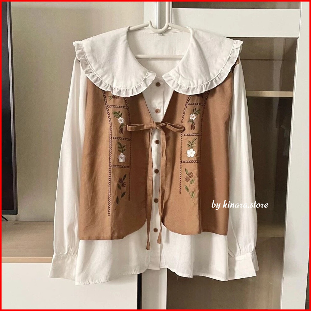 Zafanya Blouse - Atasan Wanita Bordir Rompi - Atasan Korea Style - Size Xxl Xl L M S - Bahan Linen Rami