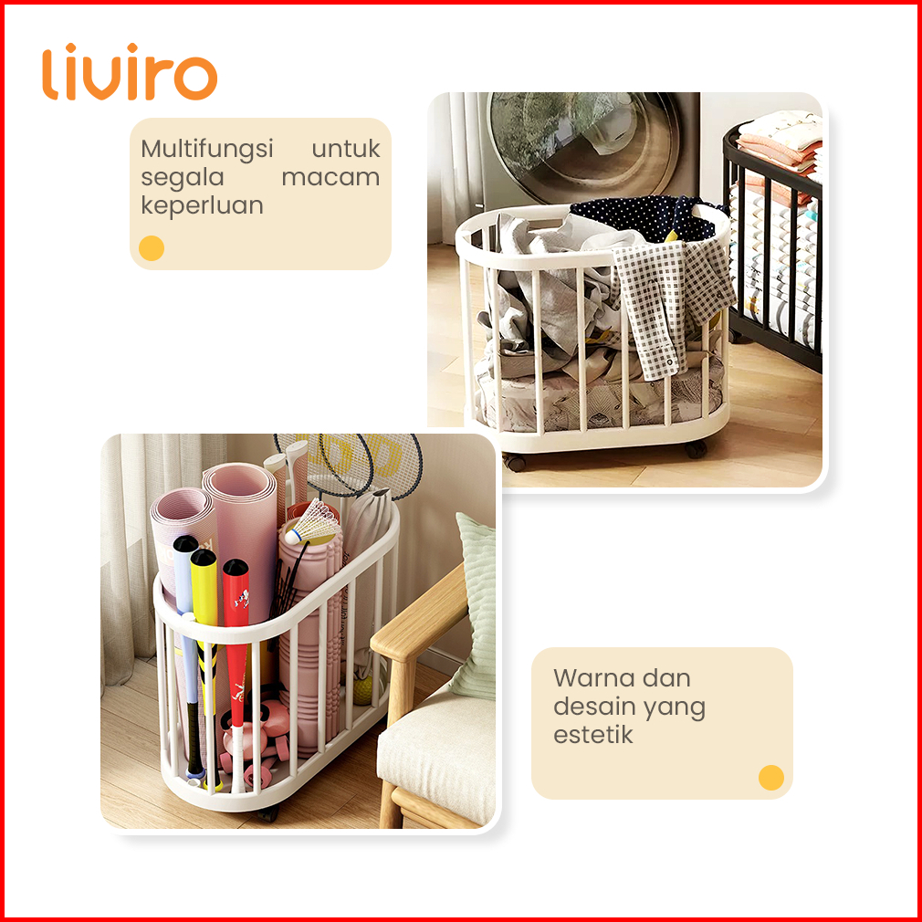 Liviro Keranjang Laundry Minimalis Multifungsi Dengan Roda Putar Kokoh