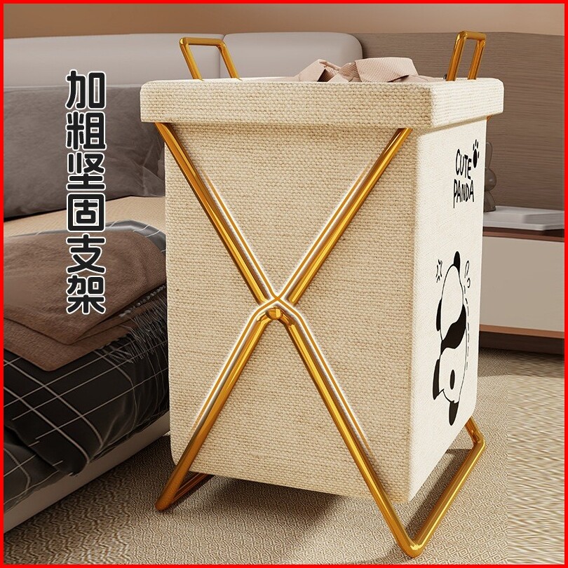 Keranjang Laundry Lipat Karakter Lucu Tempat Baju Kotor Kain Kanvas Rangka Besi Anti Karat