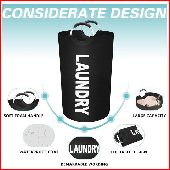 Keranjang Baju Kotor Kapasitas Besar Material Kuat Desain Lipat Praktis 90l Hitam