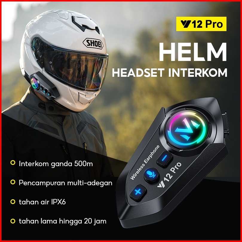 Soarfly Intercom Y12 Pro Headset Bluetooth 5.3 Helm Sepeda Motor Bluetooth Headset Hands Free Call Kit Ipx6 Tahan Air