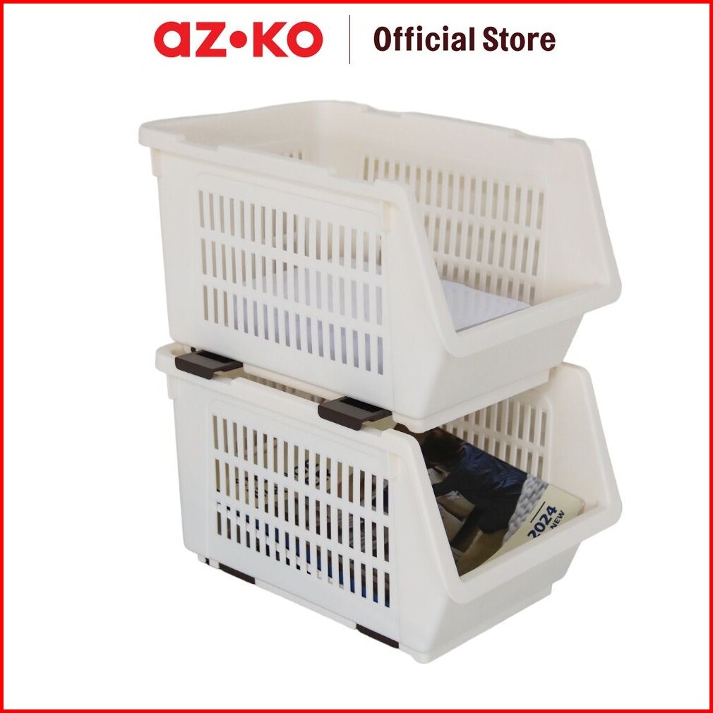 Azko Stora 35x23.5x20 Cm Keranjang Penyimpanan Stackable - Krem Beige Storage Basket Kotak Penyimpanan Serbaguna Bin Org
