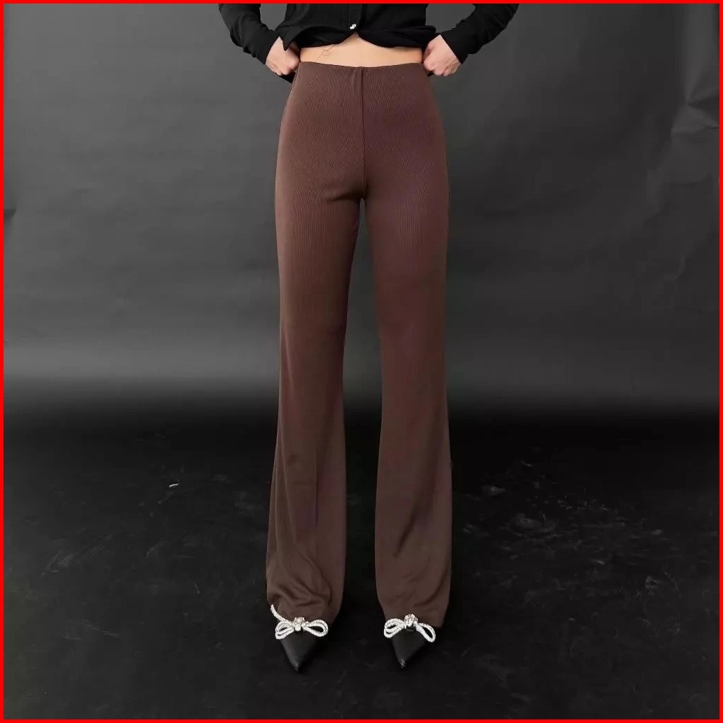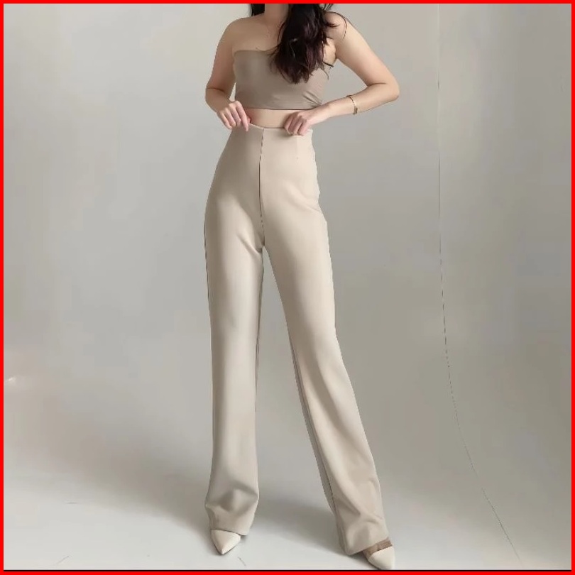Yuway-celana Fit And Flare Pants Cutbray Scuba Pinggang Highwaist Bahan Stretch Cutbray Wanita