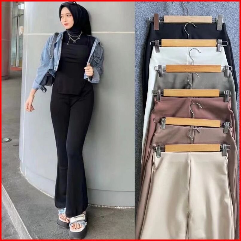 A.x.e - Premium Flare Pants Scuba Cutbray Highwaist Scuba Tebal Anti Nerawang.