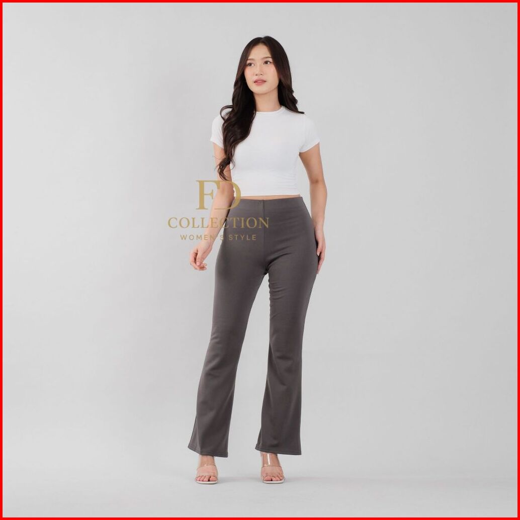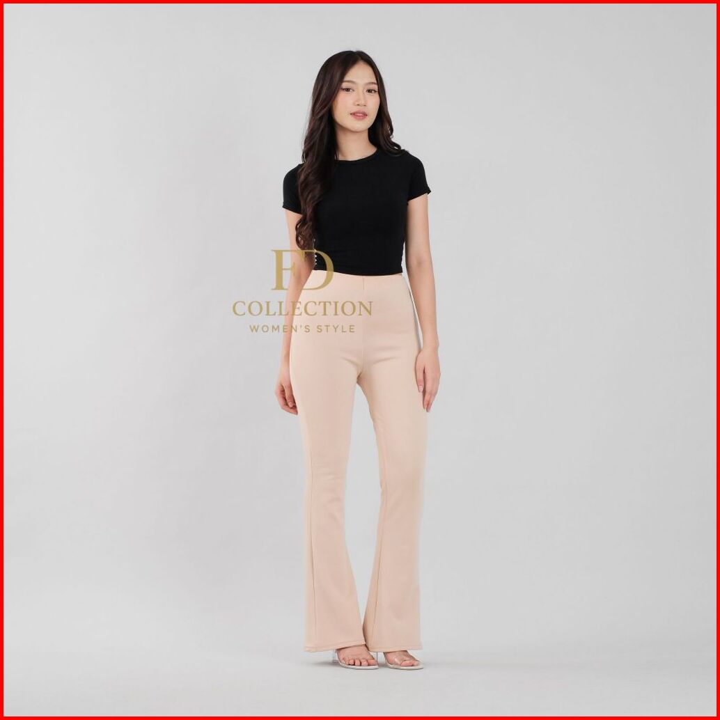 Fd-flare Pants -celana Scuba Cutbray Wanita High Waist Slim Look Bahan Tebal Stretch Premium Kekinian
