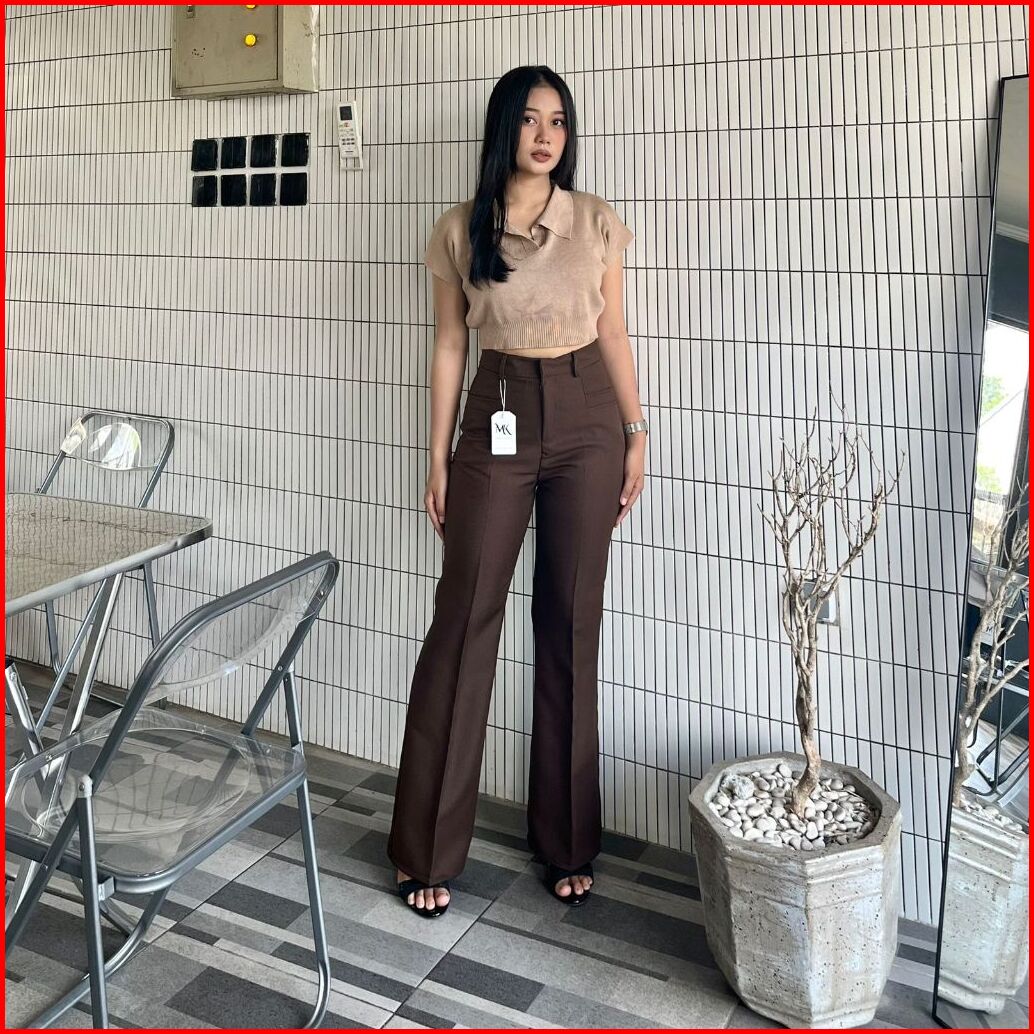 Kylie Cutbray Highwaist Pants Cutbray Flare Pants Wanita - Celana Panjang Korean Style Celana Kantor