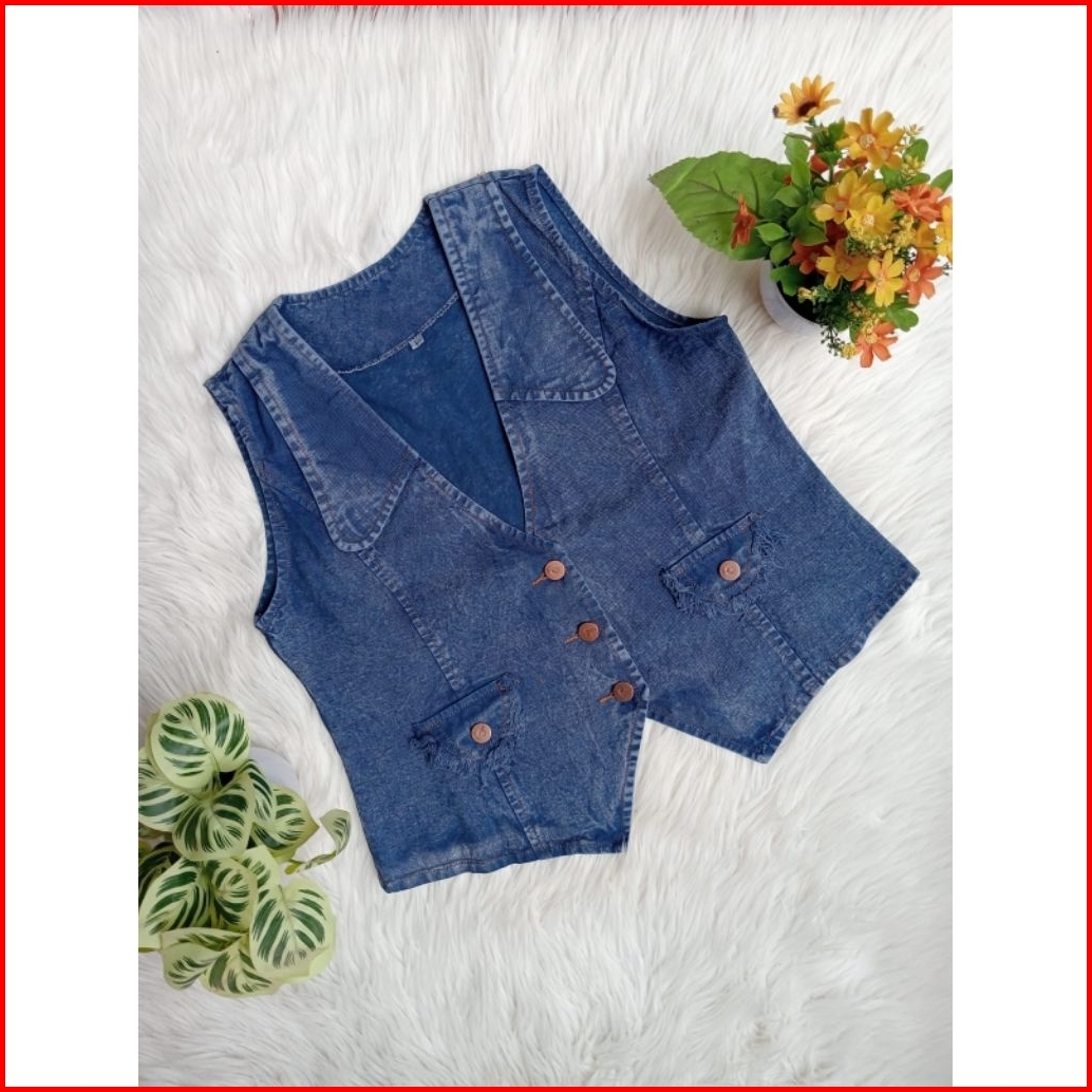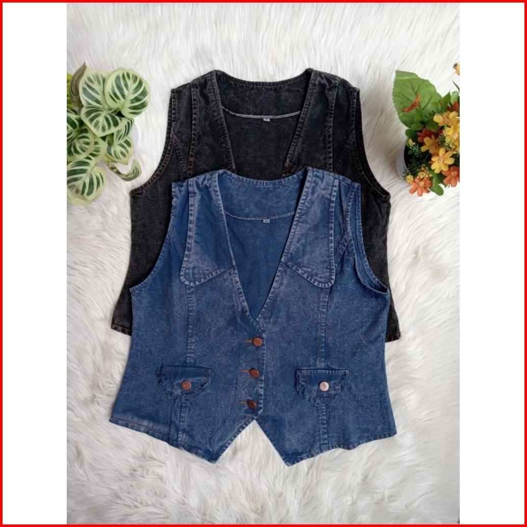 Vest Jeans Vest Korean Style Rompi Jeans Wanita Kekinian