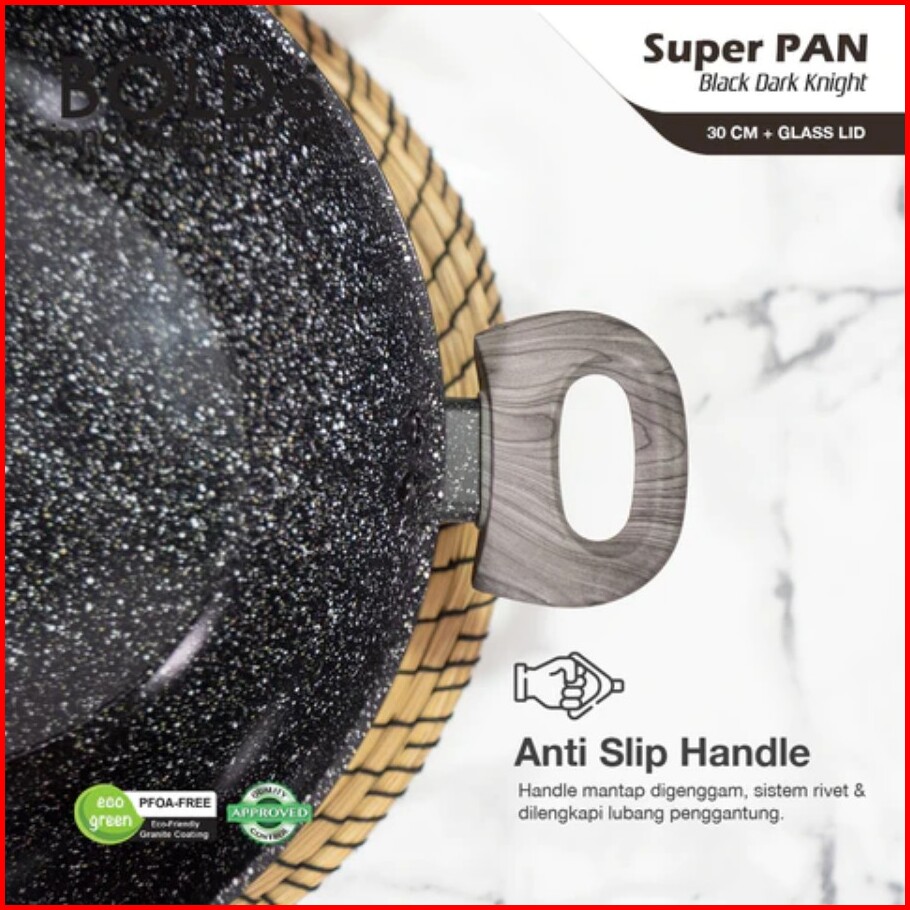 Bolde Super Pan 2 Ear Wok Wajan 30cm Lid Black Dark Knight