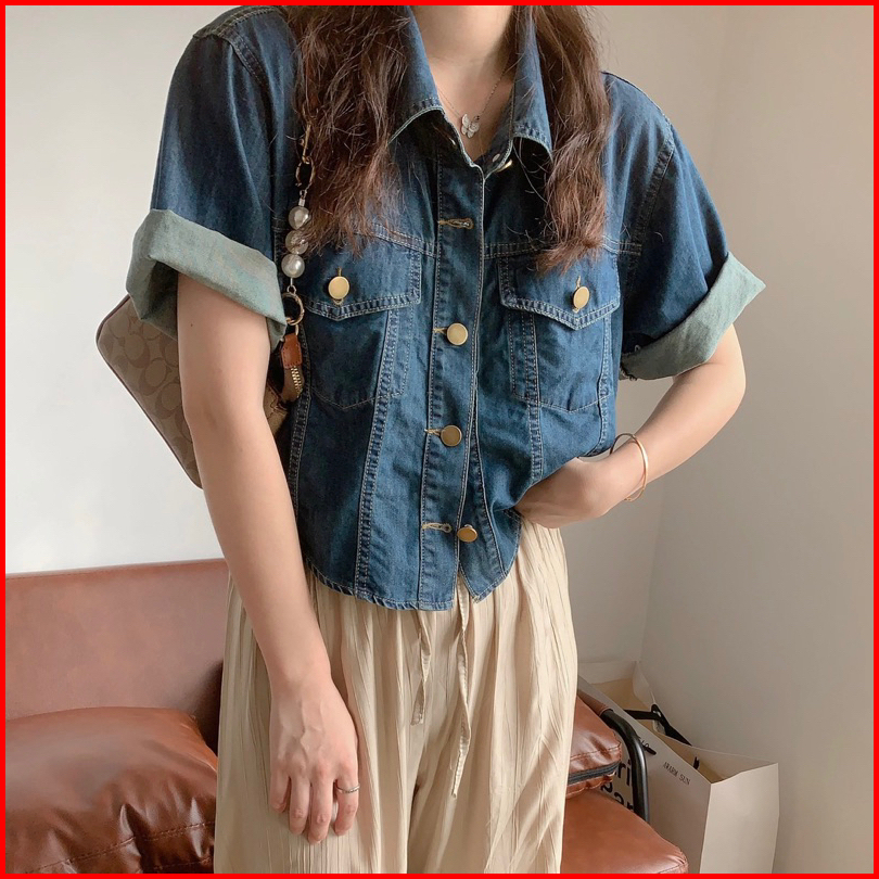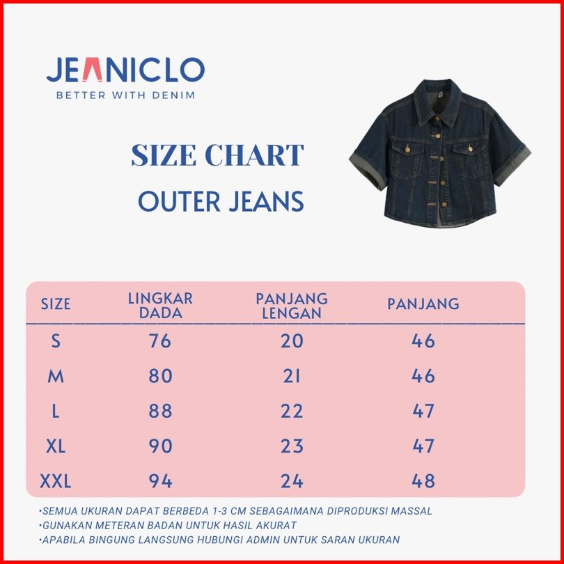Jeaniclo - Outer Jeans Jn501 Atasan Outer Jeans Wanita Lengan Pendek Crop Top Shirt Bahan Denim Premium Kemeja Lengan Pe