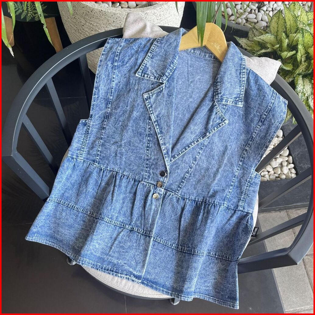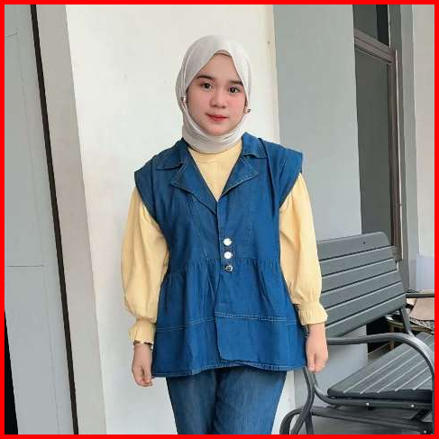 Geo Vest Oversize Melody Vest Outer Wanita Kekinian Vest Jeans Jumbo