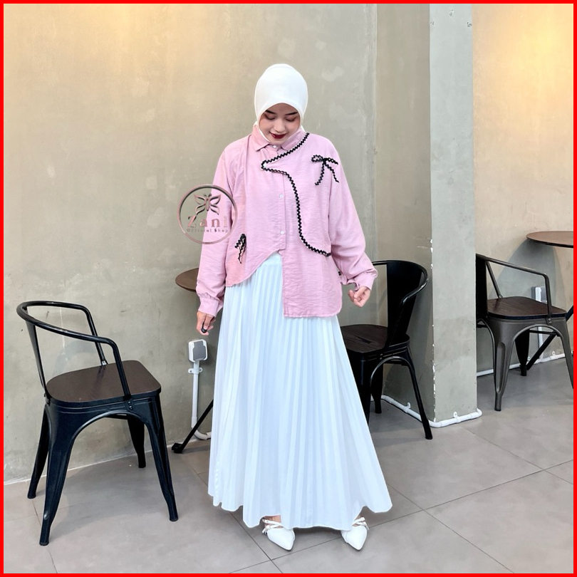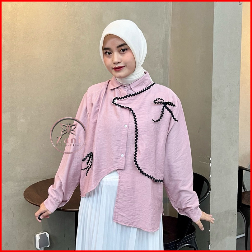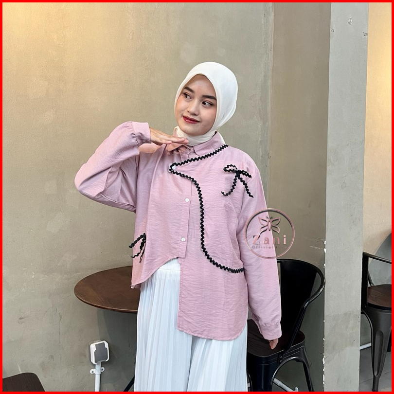Zani - Nucha Blouse Pololinen - Atasan Polos Aksen Renda - Blouse Coquette - Kemeja Casual