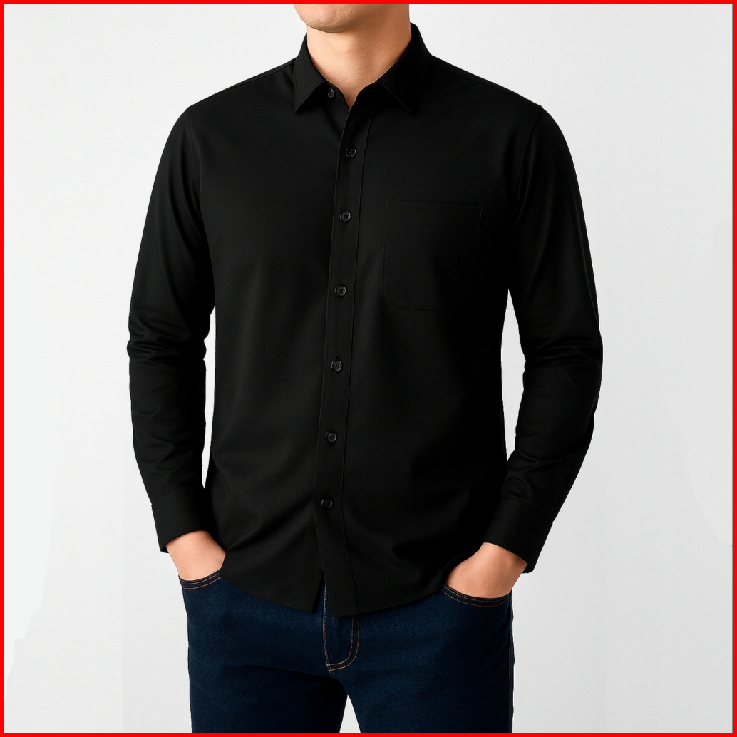 Kemeja Polos Toyobo Lengan Panjang Pria Dewasa Bahan Premium Reguler Fit Warna Hitam