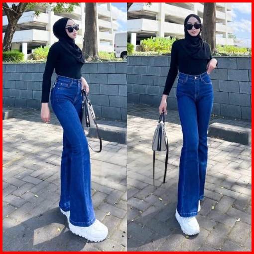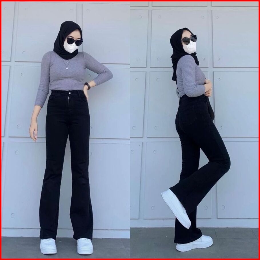 Highwaits Cutbray Jeans Wanita Fit And Flare - Celana Cutbray Jeans Wanita Super Premium