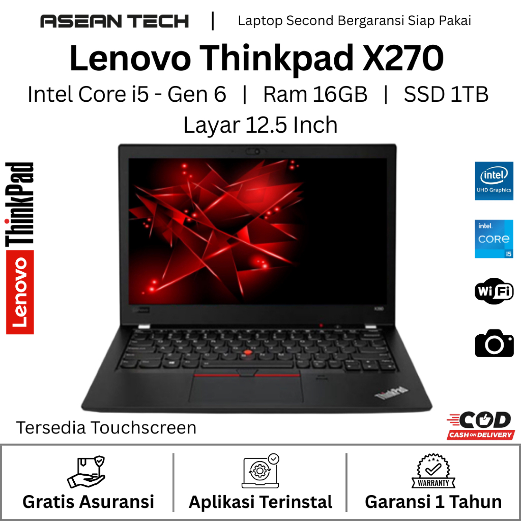 Laptop Touchscreen Lenovo Thinkpad X270 Core i7 Gen 7 Ram 16GB SSD 1TB - Second Murah Bergaransi