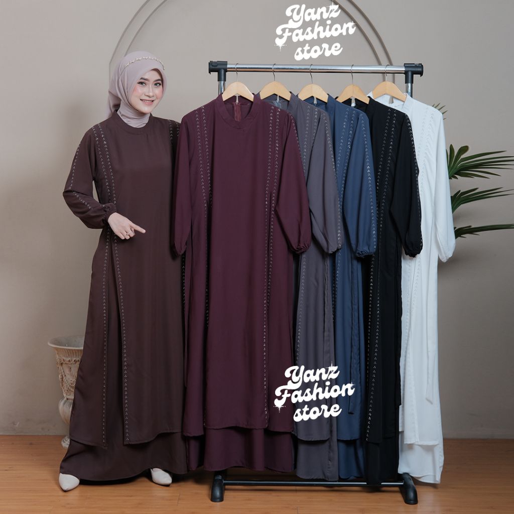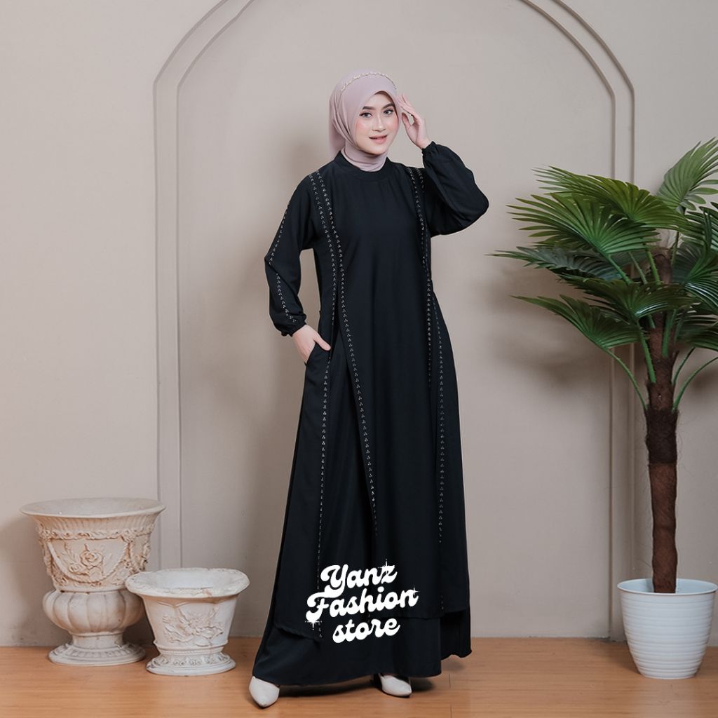 Invinov abaya gamis terbaru syahara dress bahan Sabrina anti UV premium mix payet swarovski baju muslim wanita muslimah