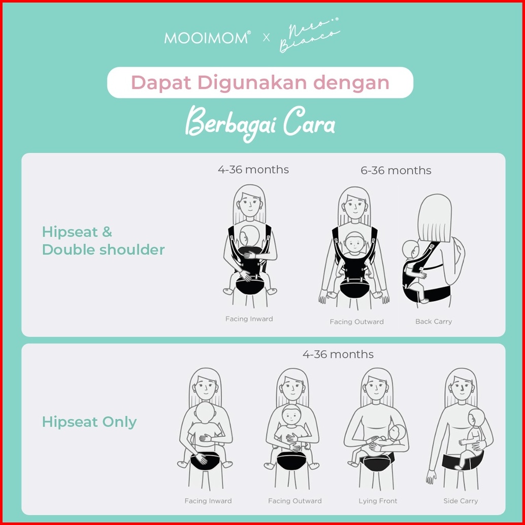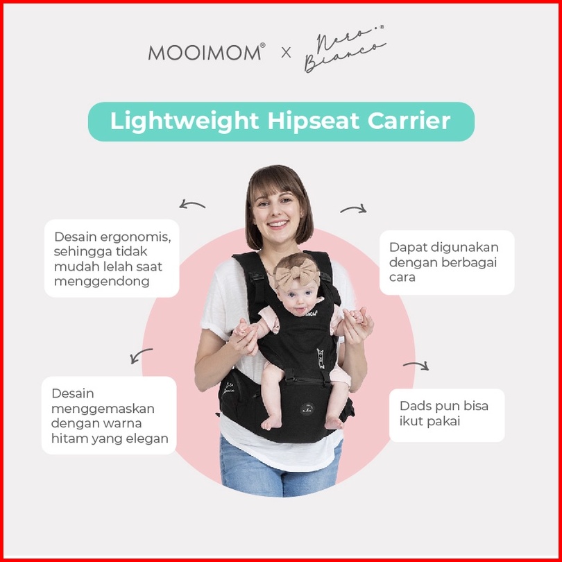 Gendongan Bayi Hipseat Kokoh - Mooimom X Nero Bianco Lightweight Hipseat Carrier