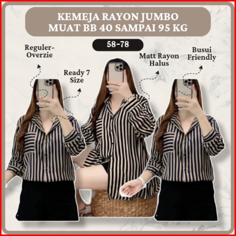 Kemeja Salur Jumbo 4xl 3xl Xxxl Xxl Xl L M S - Kemeja Rayon Jumbo Ld 120 130 - Kemeja Busui Rayon Jumbo Bigsize Oversize