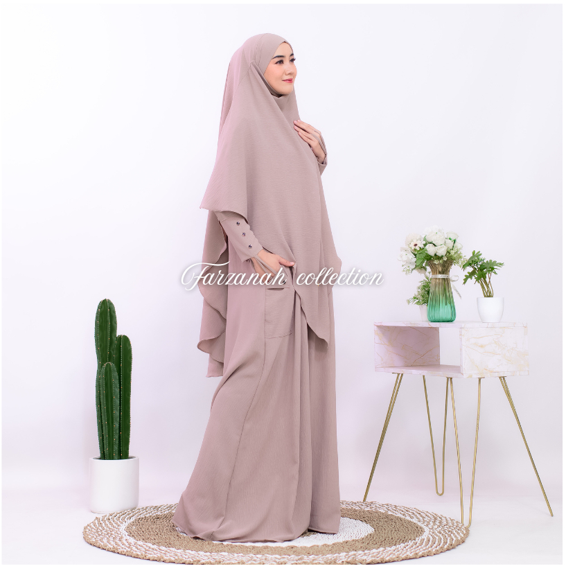 gamis abaya haviza set french khimar abaya muslimah umroh haji terbaru crinkle mewah variasi kancing