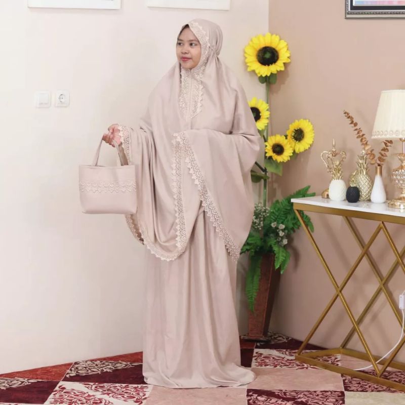 mukena resleting muknah terbaru katun polos 2in1 renda mewah series Madinah jumbo free tas dan broos