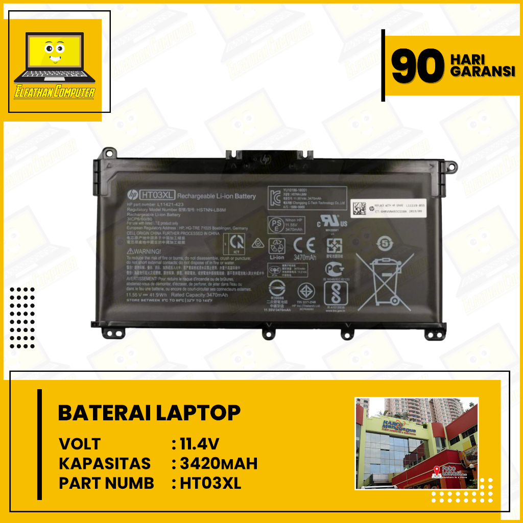 Baterai Laptop 14-ce,14-cf,14-cm,14-dq, 14s-cr1001tx,14s-cr1002tu, 240 G7,245 G7,250 G7 (HT03XL)