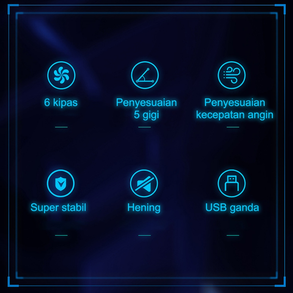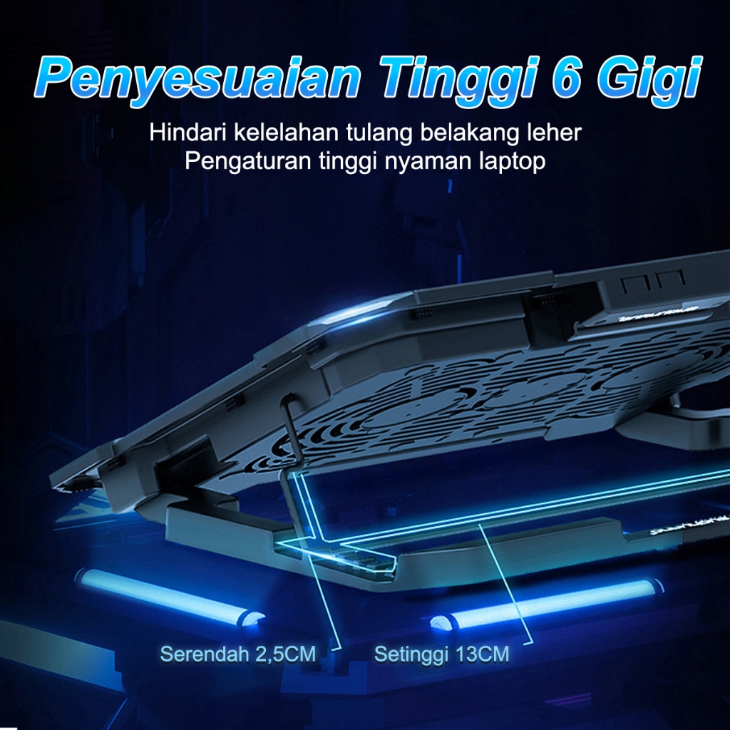 DL Cooling Fan Stand Laptop Portable 6 Fans LED Silent Noise Cooler Foldable 9"-18" LED Light Fan Adjustable Height