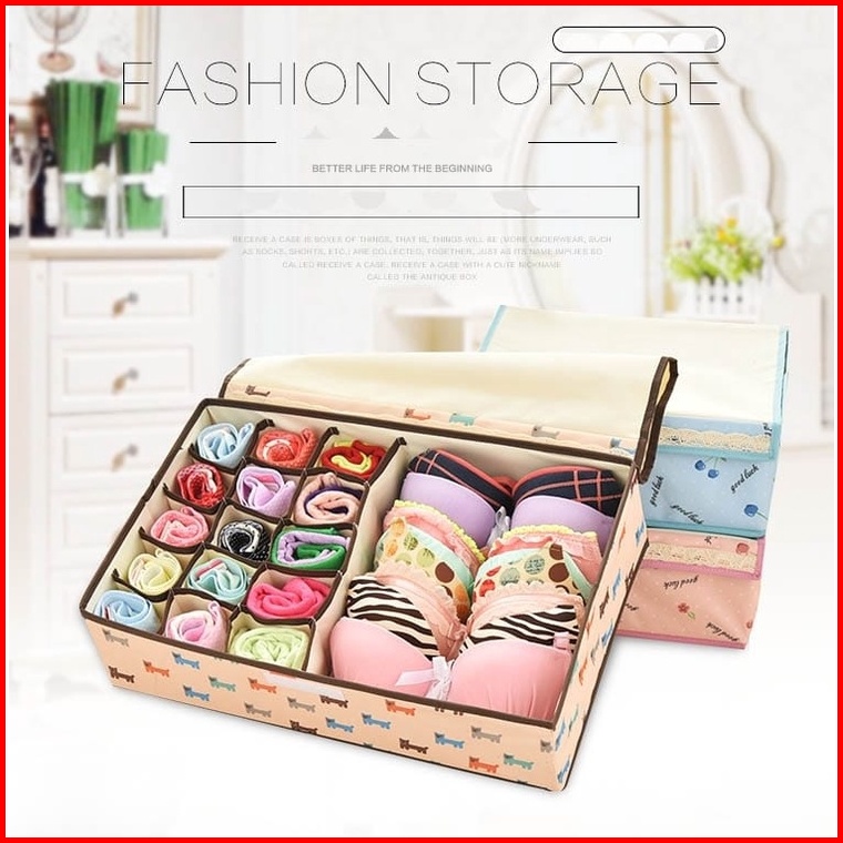 Tyb T12 2 In 1 Storage Box Underware Bra Motif 12 Grid Storage Box Motif Tempat Penyimpanan Cd