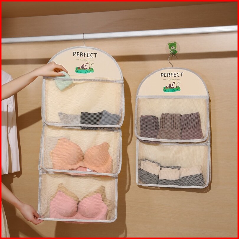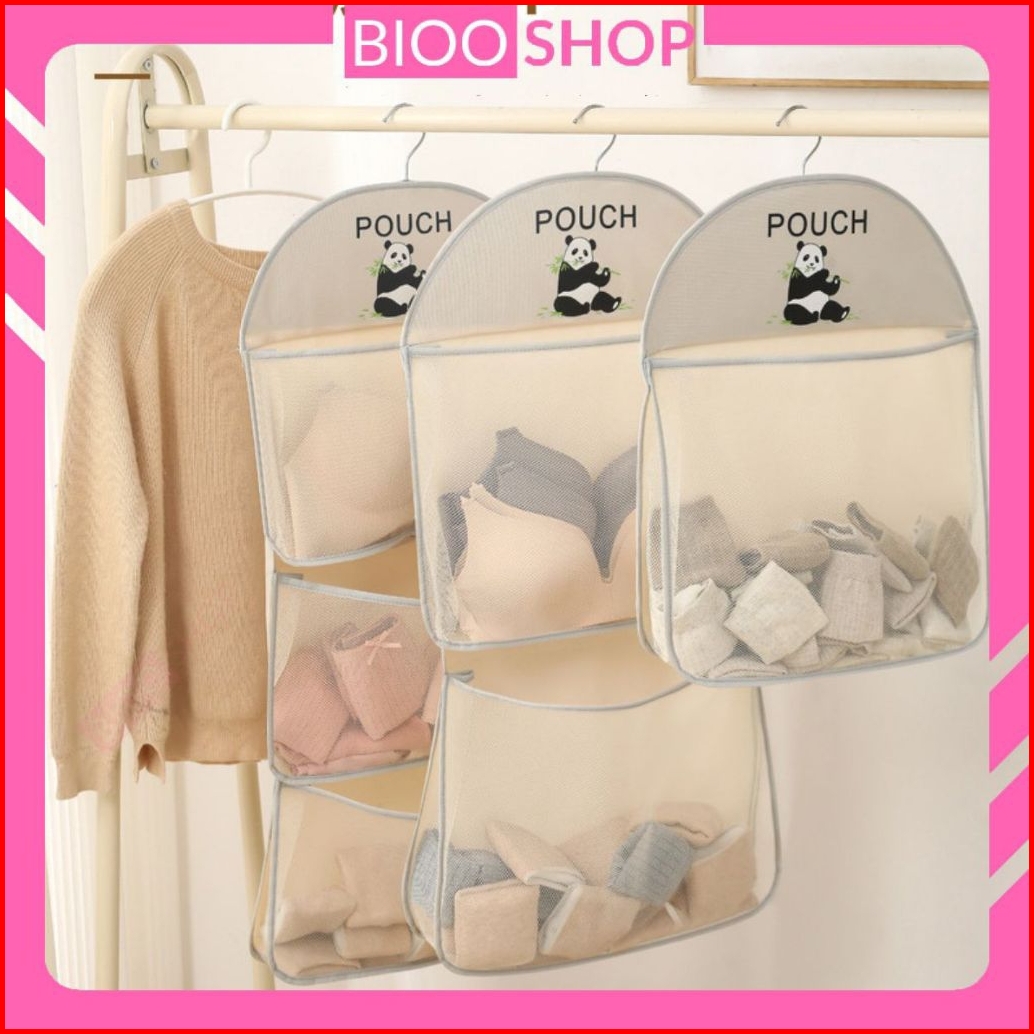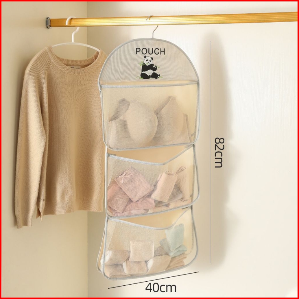 Tas Jaring Gantung 3 Tingkat Tempat Penyimpanan Baju Pakaian Bag Organizer Gantung Penyimpanan Kaos Kaki Biooshop