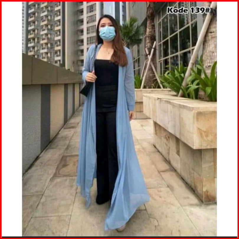 Alessa Long Outer Cardigan Bahan Ciffon Wanita Modis