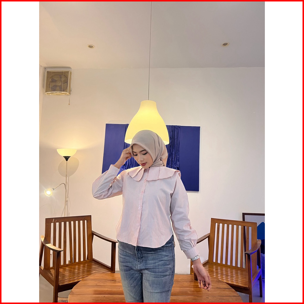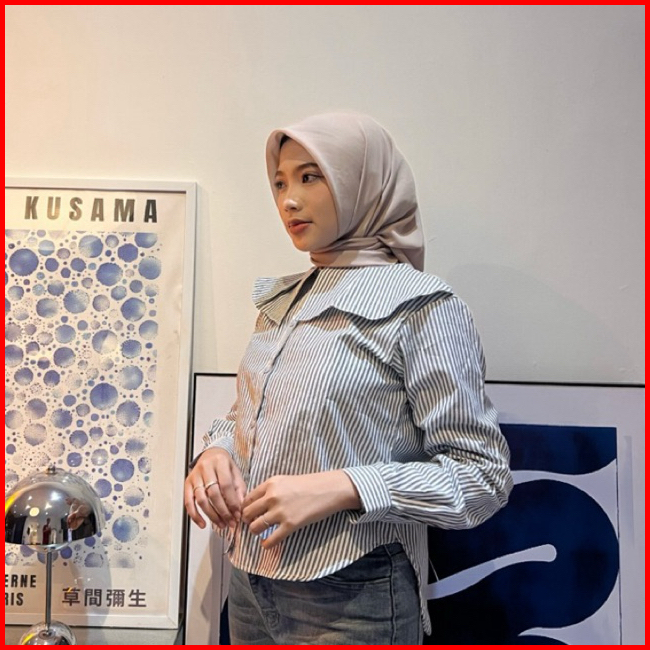 Kemeja Blouse Wanita Top Atasan Nakhasa Lengan Panjang Kerah Layer Katun Yanded Premium Kasual